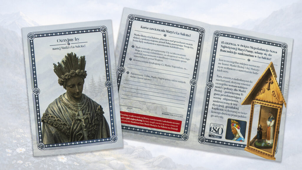 Wszystkie nadesłane karty oraz szczególne wotum wdzięczności i pokuty przywieziemy do Sanktuarium Matki Bożej w La Salette we Francji 13 czerwca – w święto Niepokalanego Serca Najświętszej Maryi Panny!